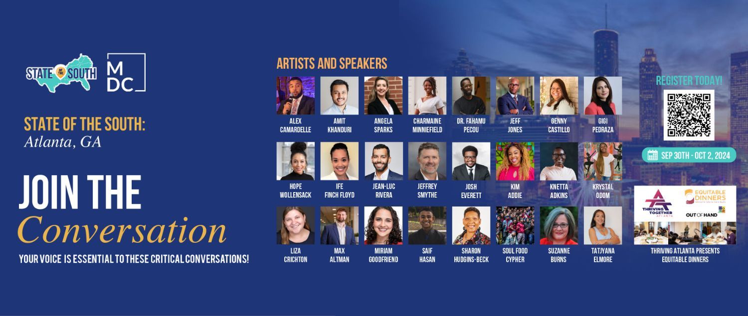 Register now to save your seat, and check here for the latest program updates! Questions? stateofthesouth@mdcinc.org We look forward to seeing you next week! Your friends at MDC |