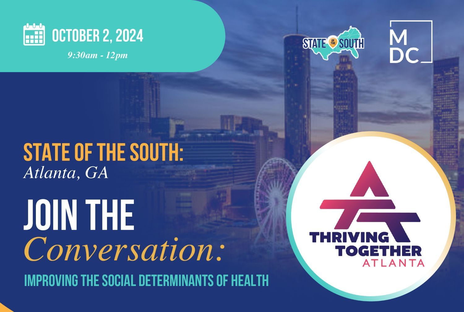 - Improving the Social Determinants of Health: Thriving Together Atlanta Presents Equitable Dinners – Wed., Oct. 2